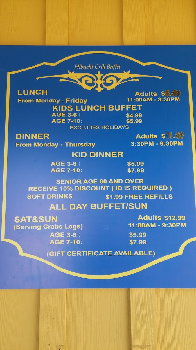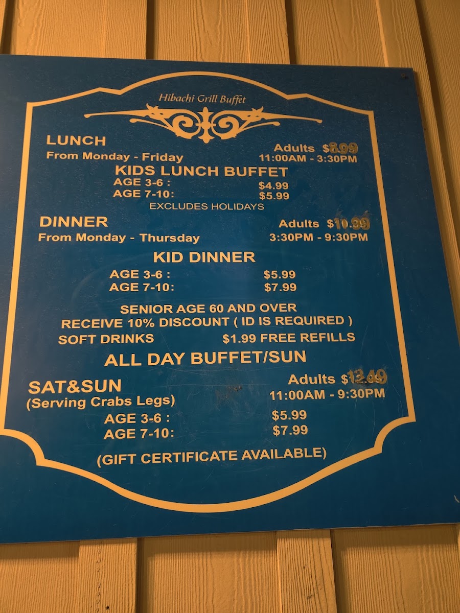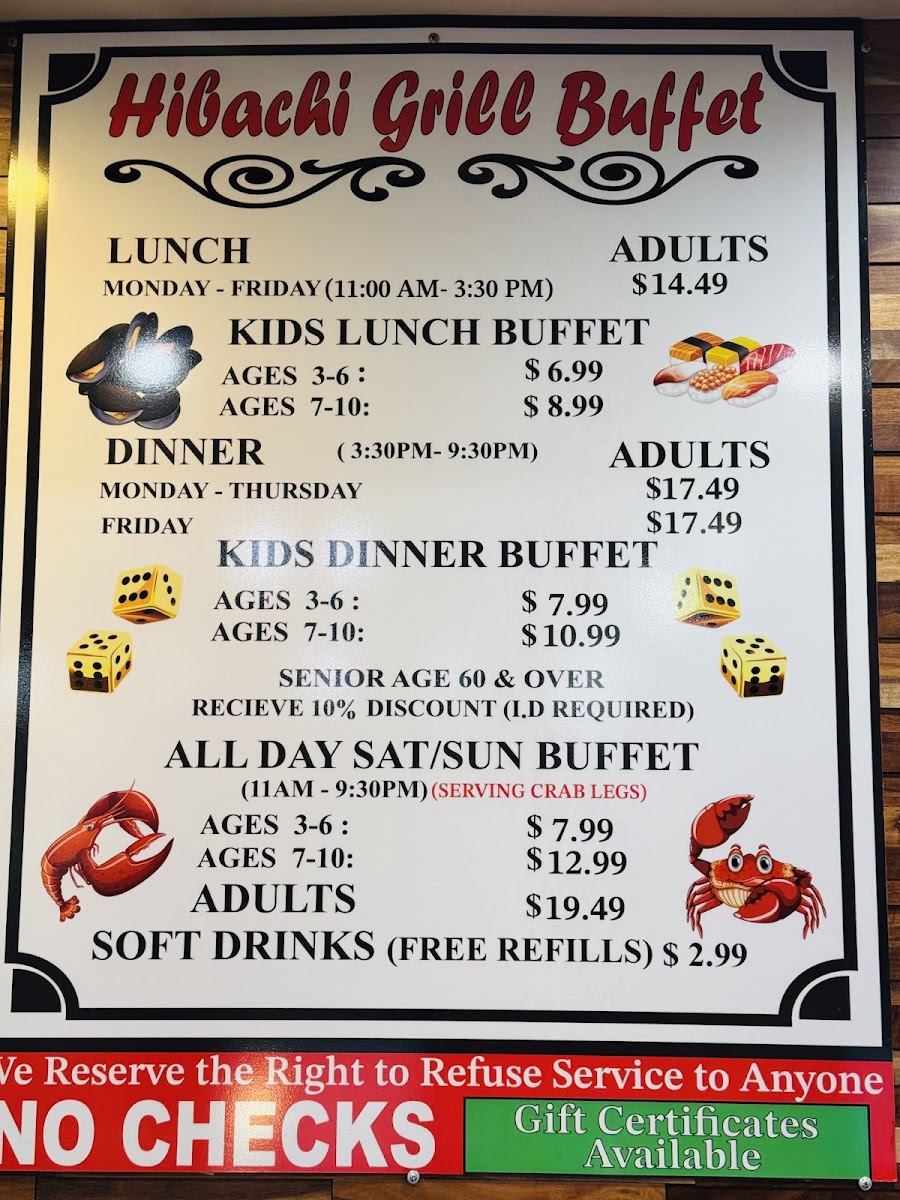 Hibachi Super Buffet Menu