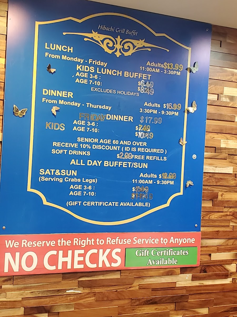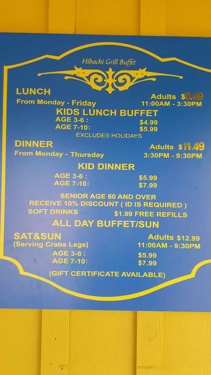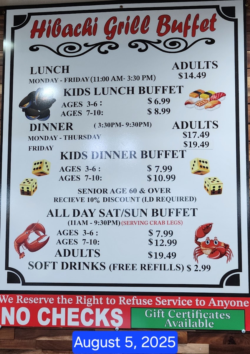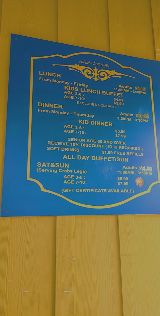 Hibachi Super Buffet Menu